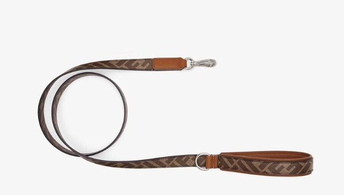 FENDI 狗繩以棕色的FF主題圖案布料製成,附有皮革及金屬細節。